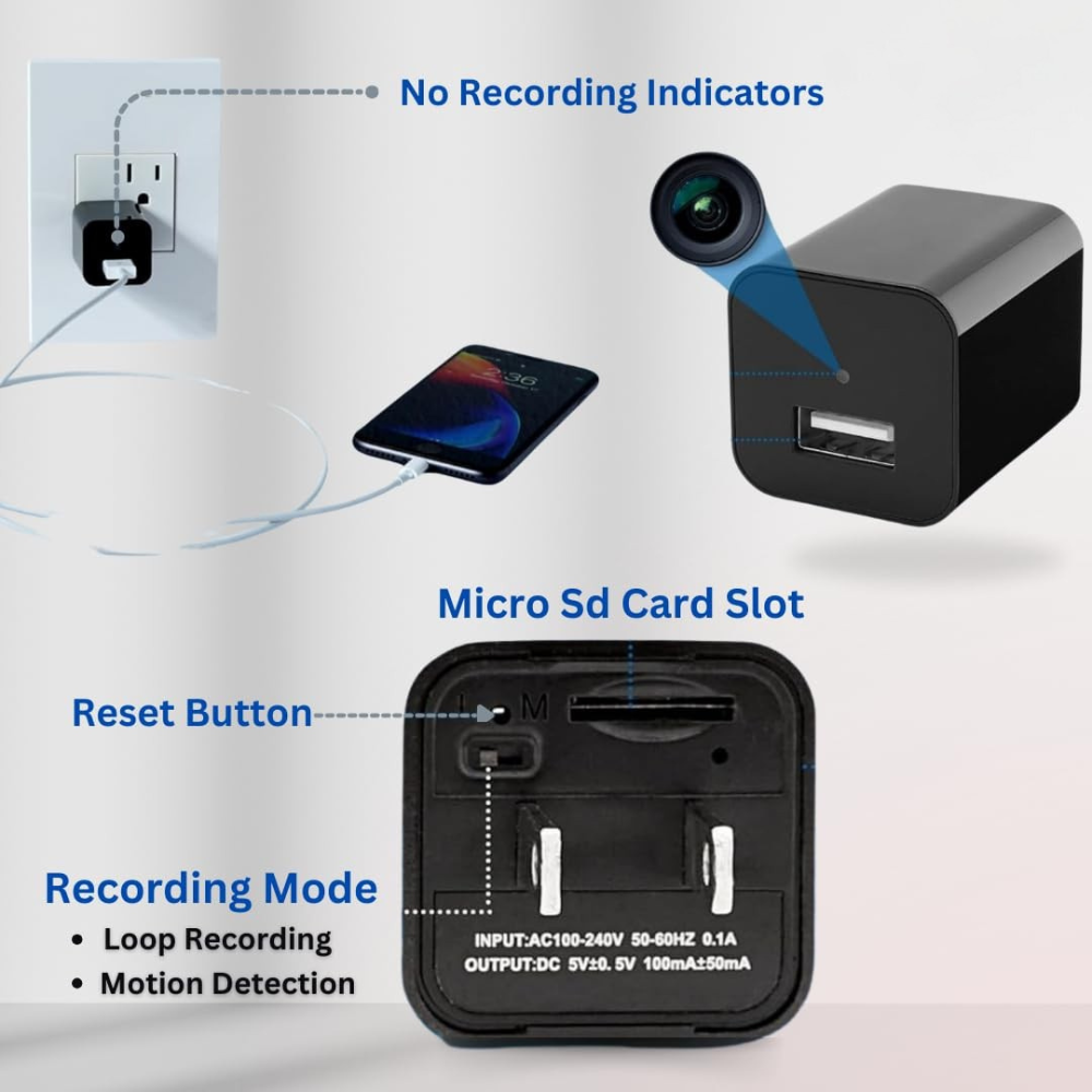 Invisible Spy Camera Built Inside - Designed to blend in completely, this charger functions just like a regular phone charger while secretly recording 1080x720 HD video. There are no lights, no sounds, and no obvious signs that it is anything more than a standard wall plug. It is ideal for monitoring nannies, employees, or shared living spaces.