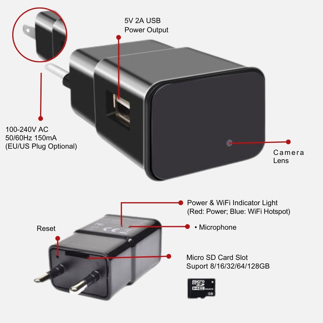 Records While Charging Devices - Use the USB port to charge your phone or tablet while the camera records in the background. This added functionality keeps the charger’s real purpose completely hidden and avoids drawing attention.